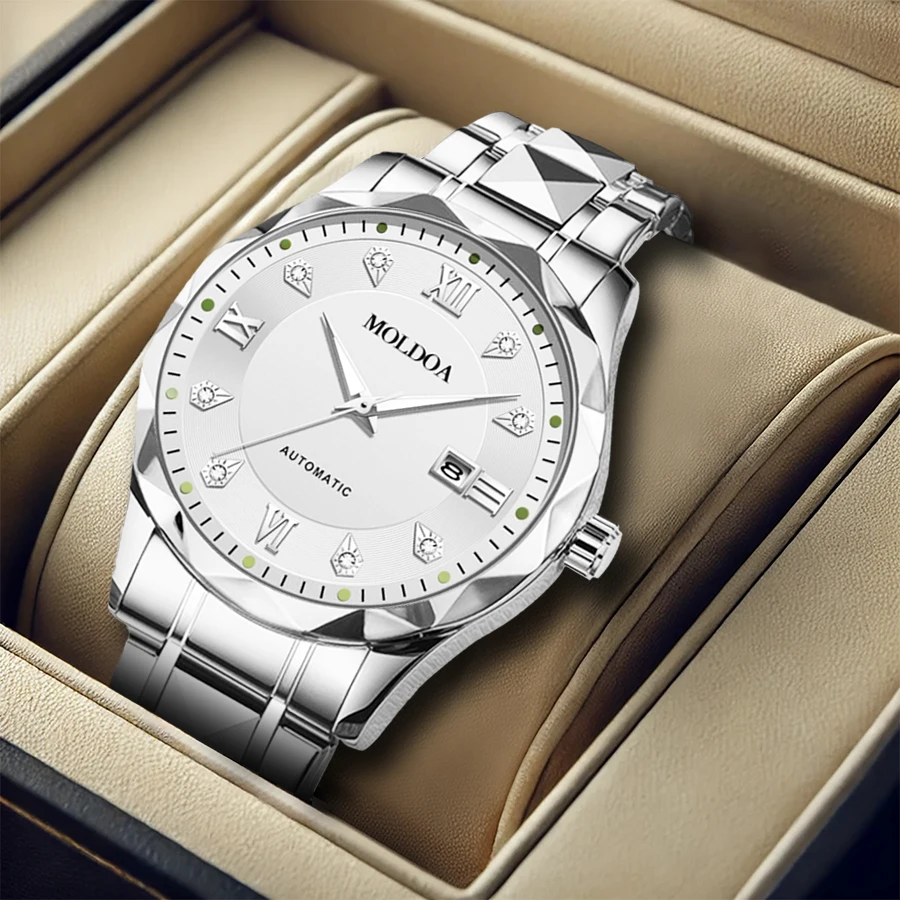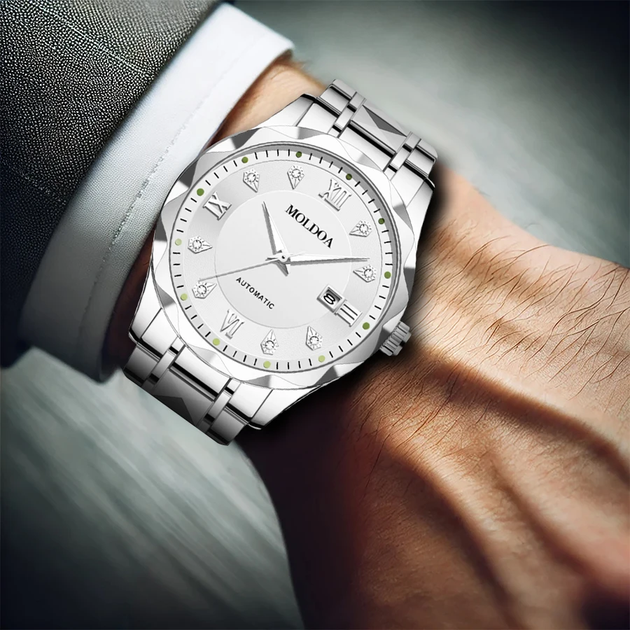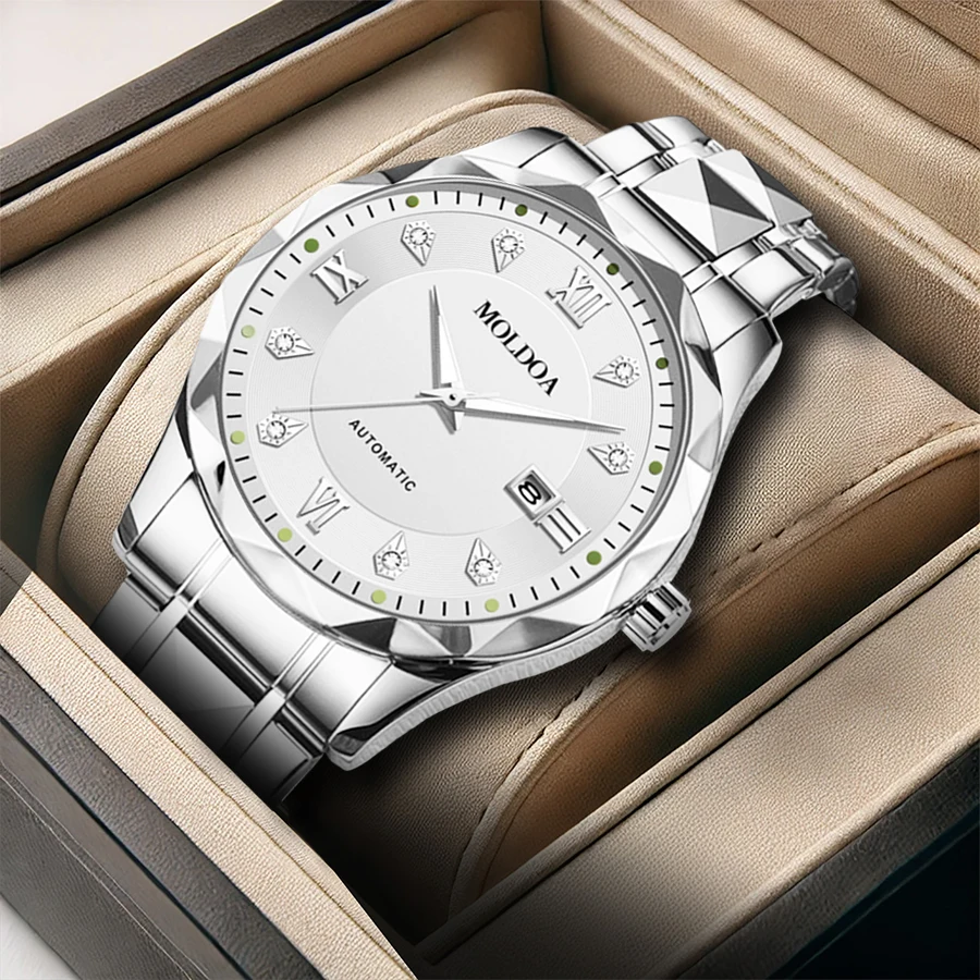 ساعة كوارتز بتصميم ضوء ليلي من الفولاذ الفضي للرجال ، قرص عالي الجمال ، أزياء العمل ، العصرية ، الجديدة
