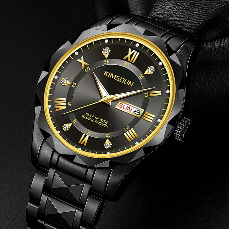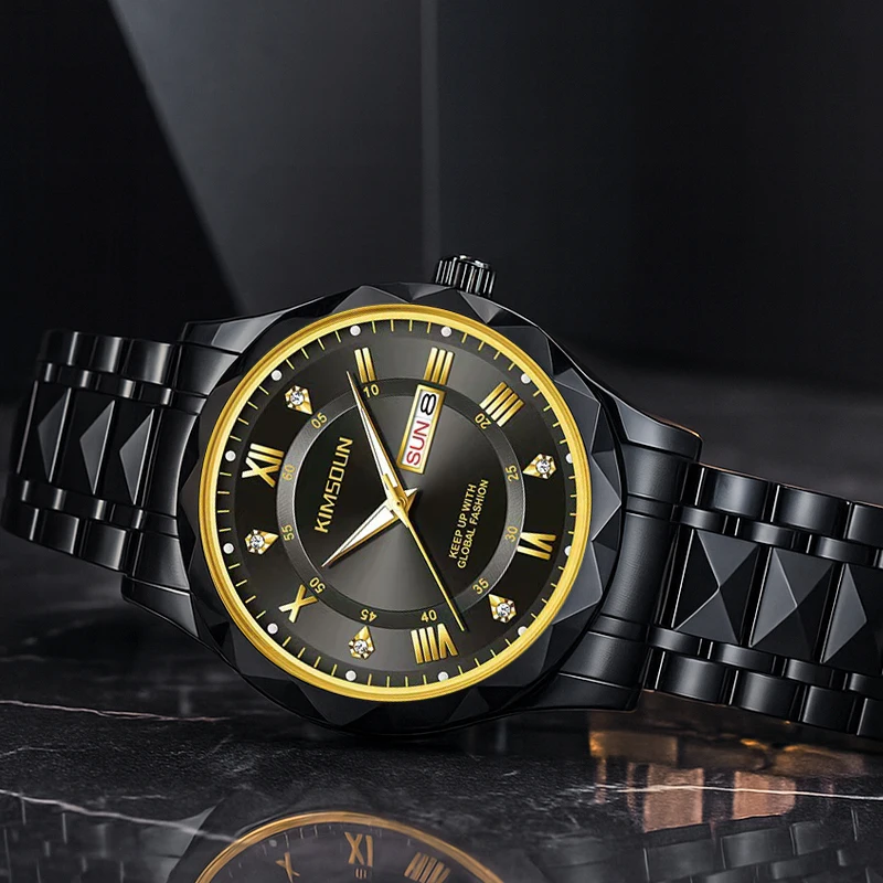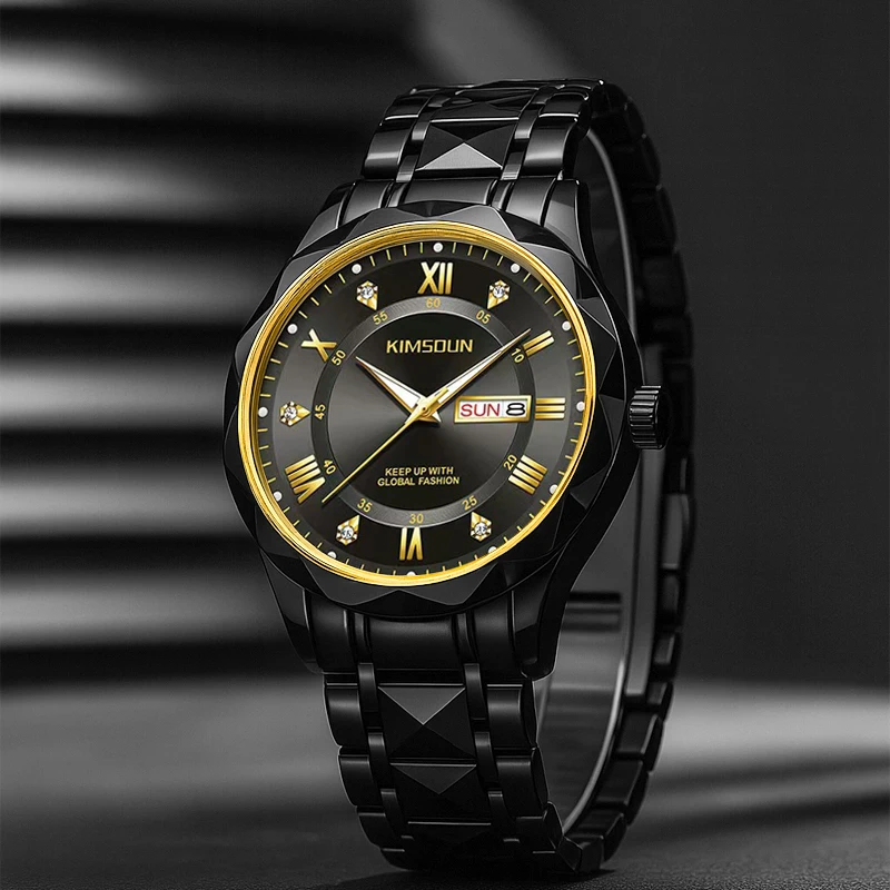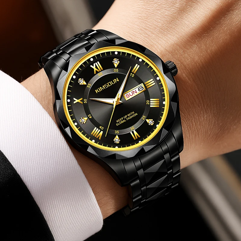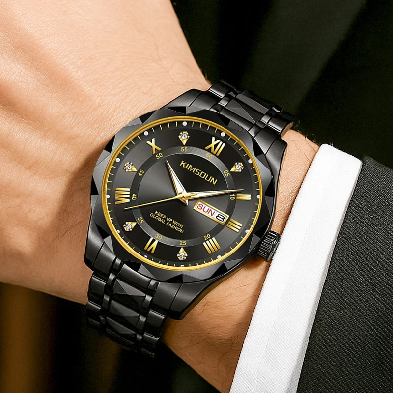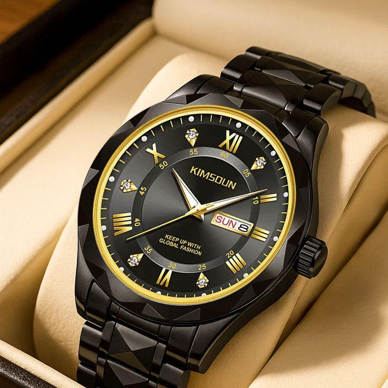 ساعة كوارتز بحزام فولاذي أسود للرجال، مقياس عمل بسيط، عرض يومي