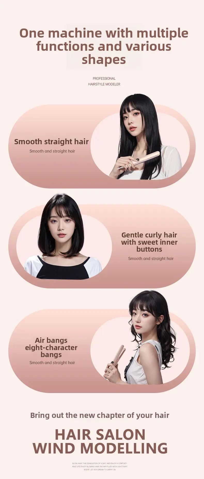 • وظيفة الاستقامة:تساعد ميزة التمليس في هذه الأداة على التخلص من التجعد وإنشاء تسريحات شعر ناعمة وأنيقة في وقت قصير.