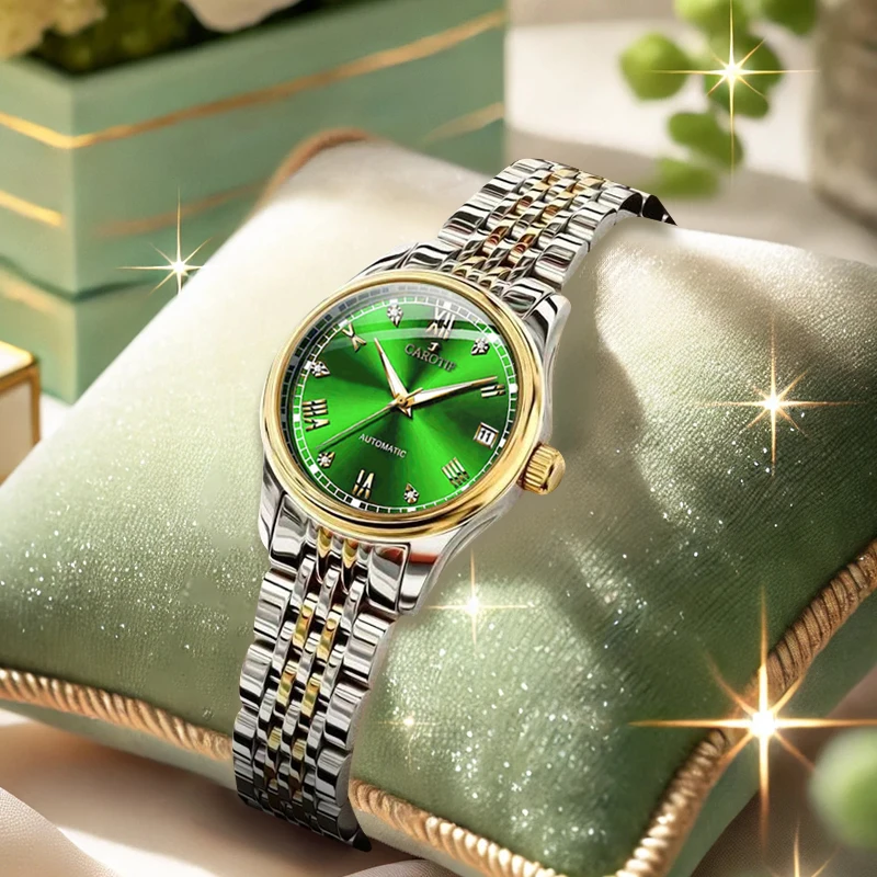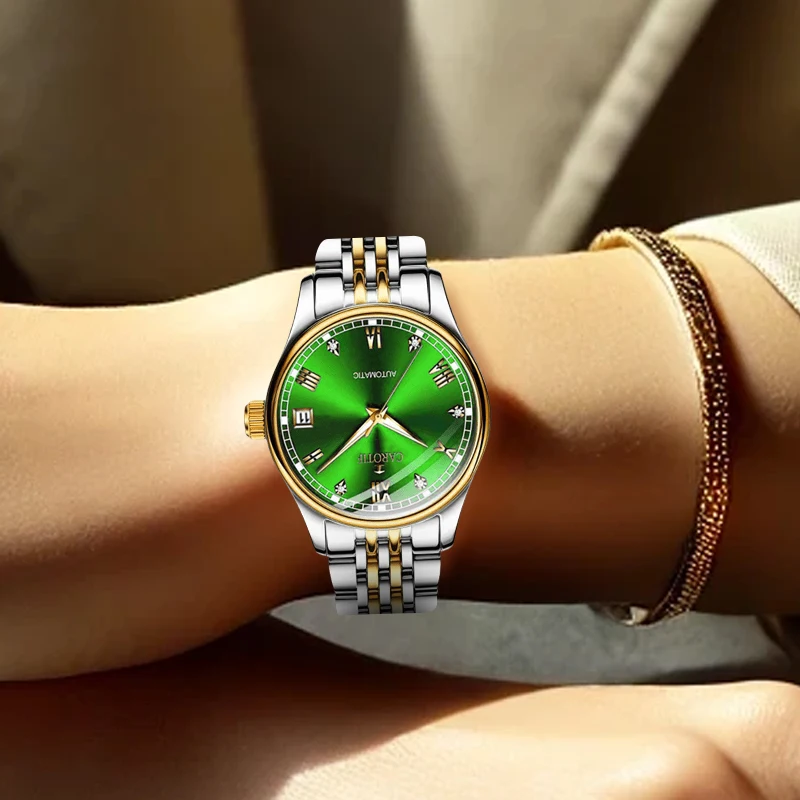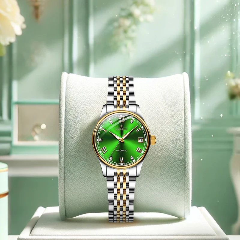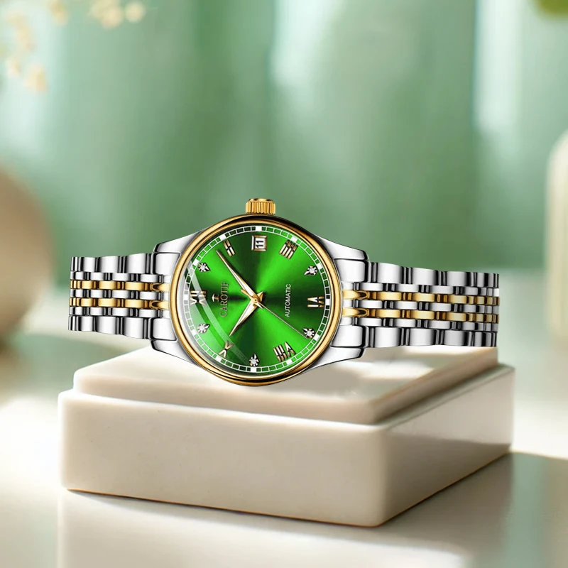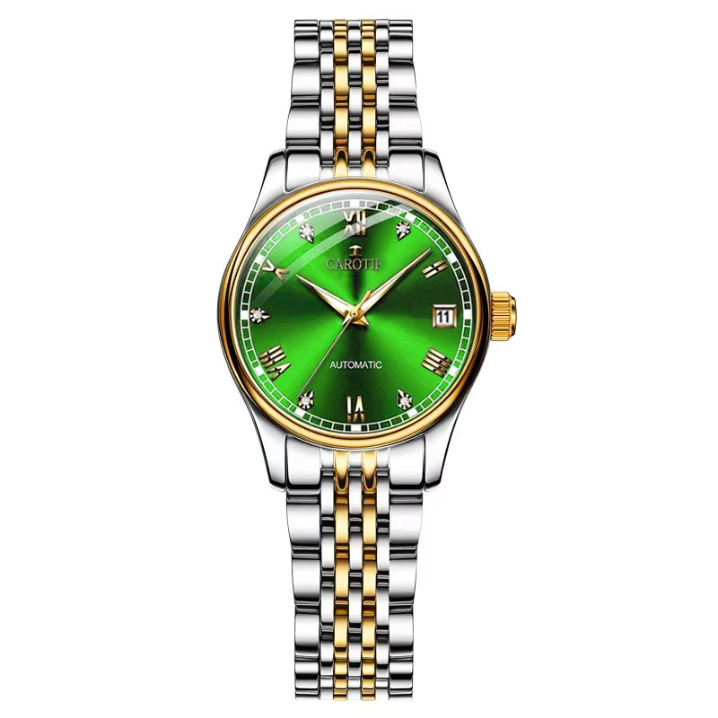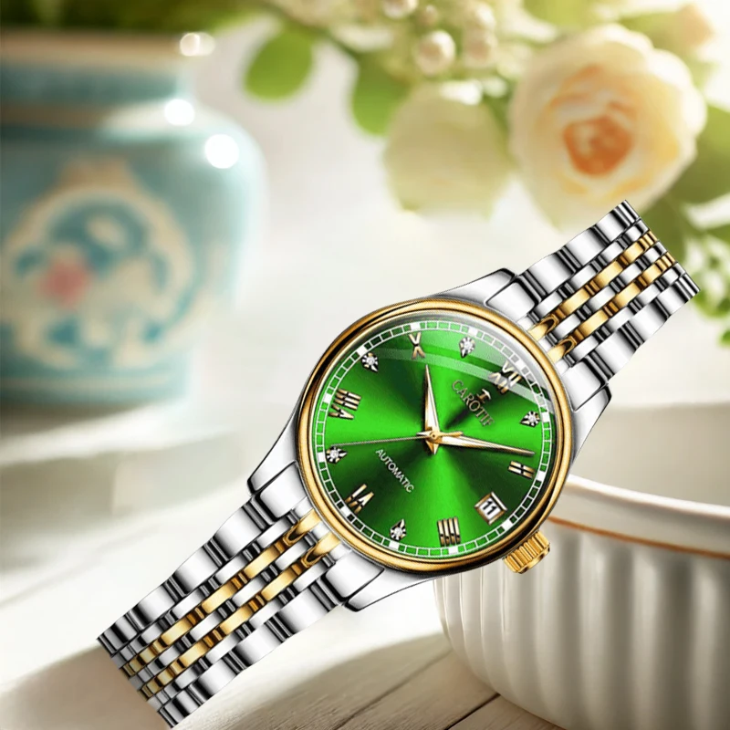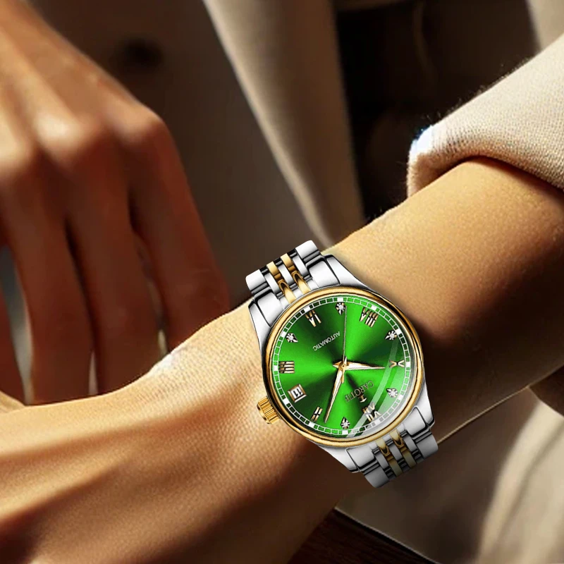غرفة نسائية بحزام فولاذي ذهبي وأرقام رومانية أنيقة للأعمال وساعة ميكانيكية أوتوماتيكية بتقويم